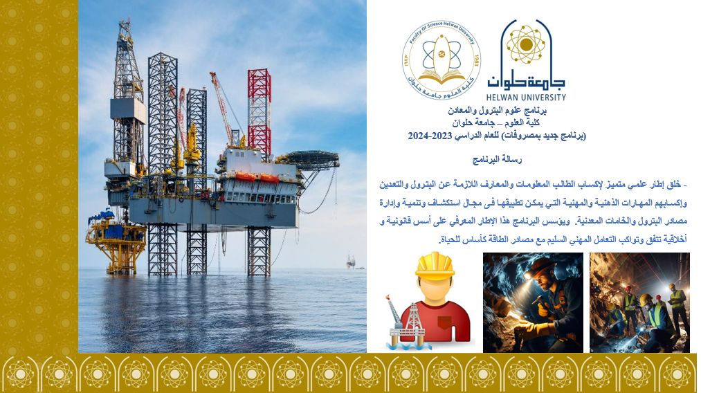 أعلنت كلية العلوم جامعة حلوان تحت رعاية الدكتور السيد قنديل، رئيس الجامعة، الدكتور مجدى الحجرى عميد كلية العلوم، عن فتح باب الالتحاق ببرنامج بكالوريوس علوم البترول والمعادن، وذلك بعد صدور القرار الوزارى ببدء الدراسة لبرنامج درجة البكالوريوس الخاص فى علوم البترول والمعادن بنظام الساعات المعتمدة، للعام الدراسي 2023-2024.