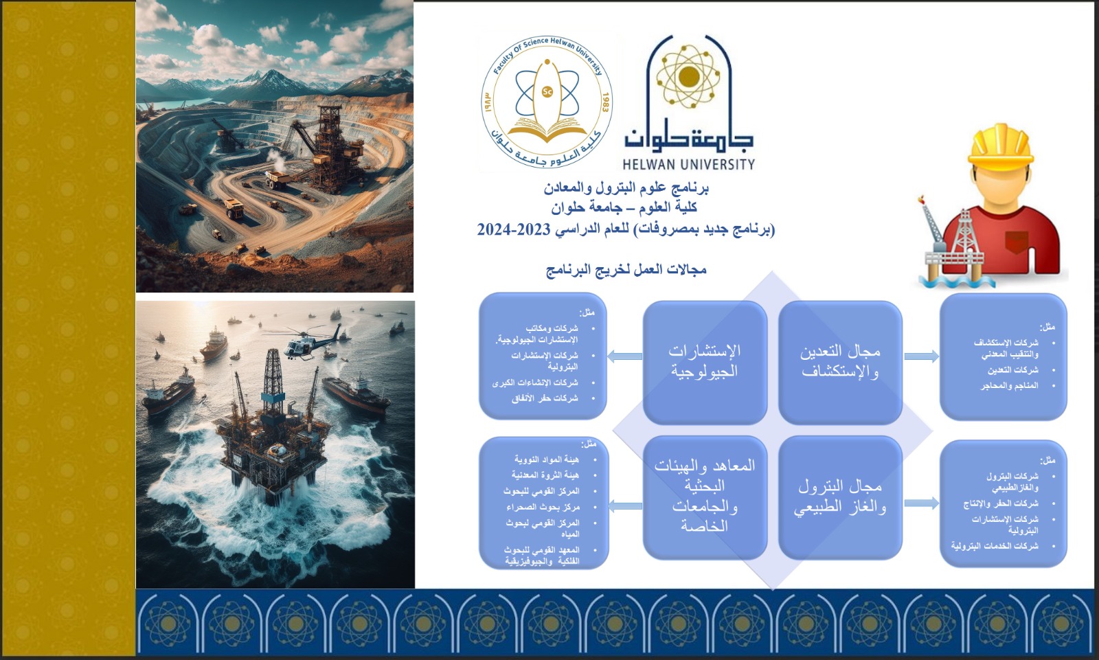 قرار وزاري.. بدء الدراسة لبرنامج درجة البكالوريوس الخاص فى علوم البترول والمعادن بعلوم حلوان بنظام الساعات المعتمدة
