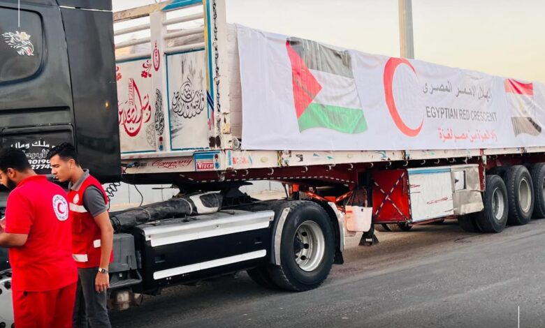 دفع الهلال الأحمر المصري، قافلة « زاد العزة .. من مصر إلى غزة» الـ 45، والتي تحمل عدد من شاحنات المساعدات الإنسانية العاجلة في اتجاه قطاع غزة، وذلك في إطار جهوده المتواصلة كآلية وطنية لتنسيق المساعدات إلى غزة.