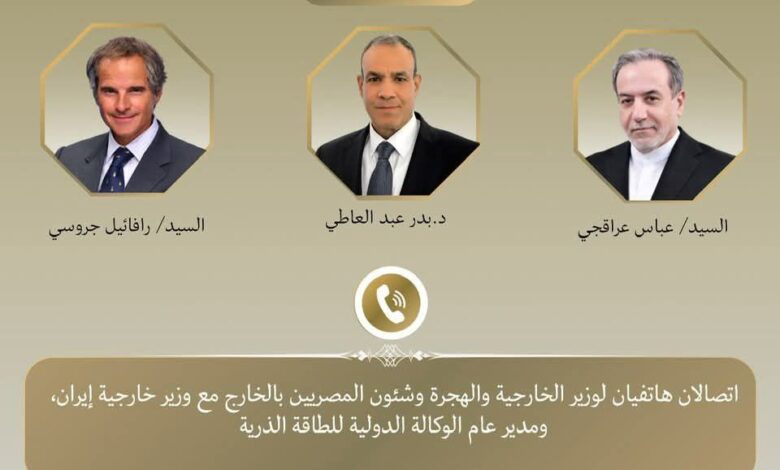 أجرى الدكتور بدر عبد العاطي، وزير الخارجية والهجرة وشئون المصريين بالخارج، اتصالين هاتفيين مع كل من عباس عراقجي، وزير الخارجية الإيراني، ورافائيل غروسي، المدير العام للوكالة الدولية للطاقة الذرية.