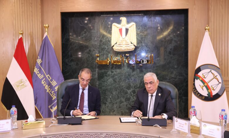 وذكر اننا مع توقيع بروتوكول اليوم نفتح أفقًا أوسع لعدالةٍ أكثر ذكاءاً مع إطلاق خدمات النيابة العامة بالكامل من خلال بوابة مصر الرقمية والتوسع في التكامل عبر المحول الرقمي الحكومي مع جهاتٍ حيوية كـبنك ناصر الاجتماعي وبنك مصر وقطاع الأمن العام وميكنة وثائق الحالة الشخصية وأعمال المأذونين واستكمال دورة العدالة الإلكترونية مع محكمة النقض والاستعداد لإدخال تقنيات الذكاء الاصطناعي في منظومة العدالة لتحليل ملايين القضايا والأحكام وهو تحولٌ سيجعل من اتخاذ القرار عمليةً أسرع وأدق وأكثر استنارة.
