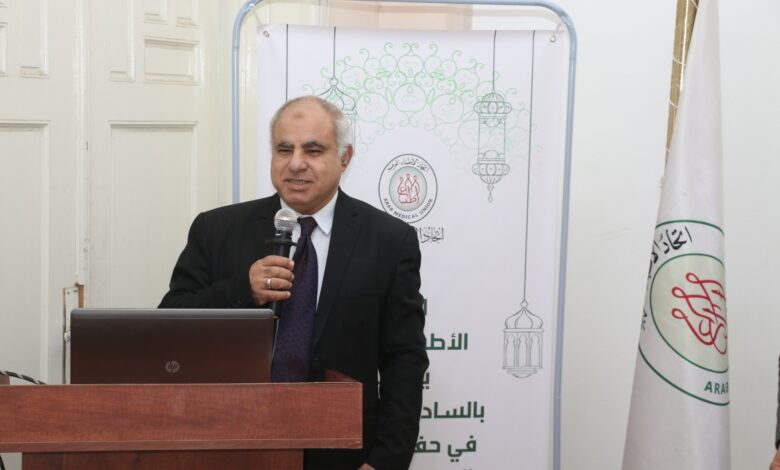 وجدد أبو سيف التأكيد على رسالة الاتحاد في خدمة الطبيب العربي والعاملين في مجال الرعاية الصحية والعمل على رعاية المريض العربي، وتطوير الأداء المهني للأطباء، والارتفاء بمستوى التدريب، لمواكبة المستجدات الطبية، ومساعدة الأطباء على تقديم رسالتهم الانسانية على أكمل وجه، بالتوازي مع أدواره الإغاثية والإنسانية التي يؤديها.