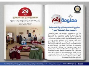 بجانب تحسين دخول 40 ألف أسرة ضمن المشروع، وفق المركز الإعلامي لمجلس الوزراء.