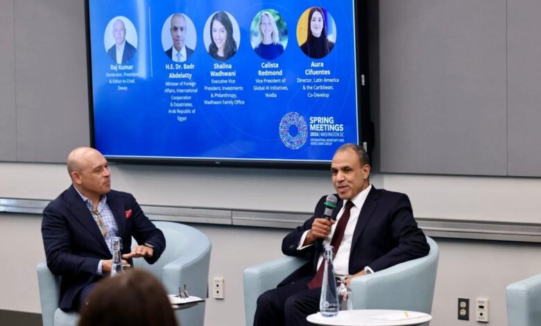 شارك الدكتور بدر عبد العاطي، وزير الخارجية والتعاون الدولي والمصريين بالخارج، في فعالية نظمها البنك الدولي بعنوان «ذكاء اصطناعي صغير… أثر كبير: سياسة واحدة وتكنولوجيا قادرة على خلق الفرص للجميع»، وذلك على هامش اجتماعات الربيع للبنك وصندوق النقد الدوليين في العاصمة الأمريكية واشنطن.